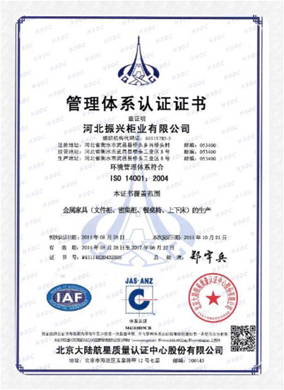 環(huán)境管理體系認(rèn)證證書